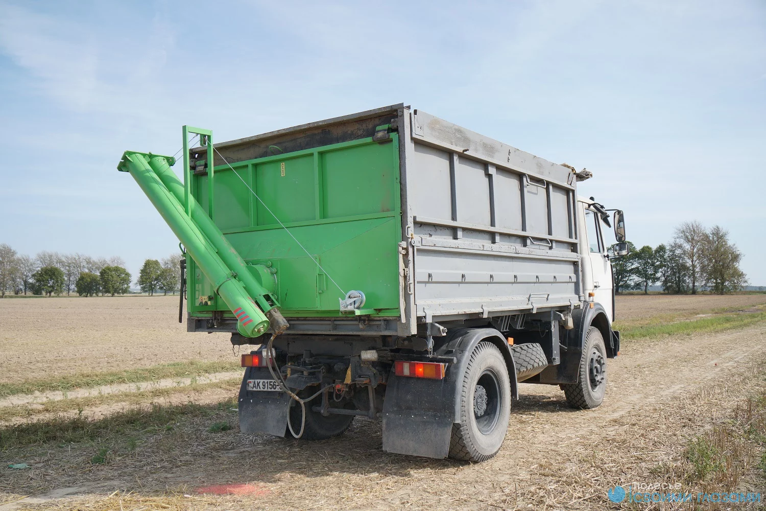 Загрузчик сеялок ЗС (на МАЗ; длина шнека составляет 5 метров; в комплекте: задний борт, ручная лебедка, гидрокран, рукава РВД).