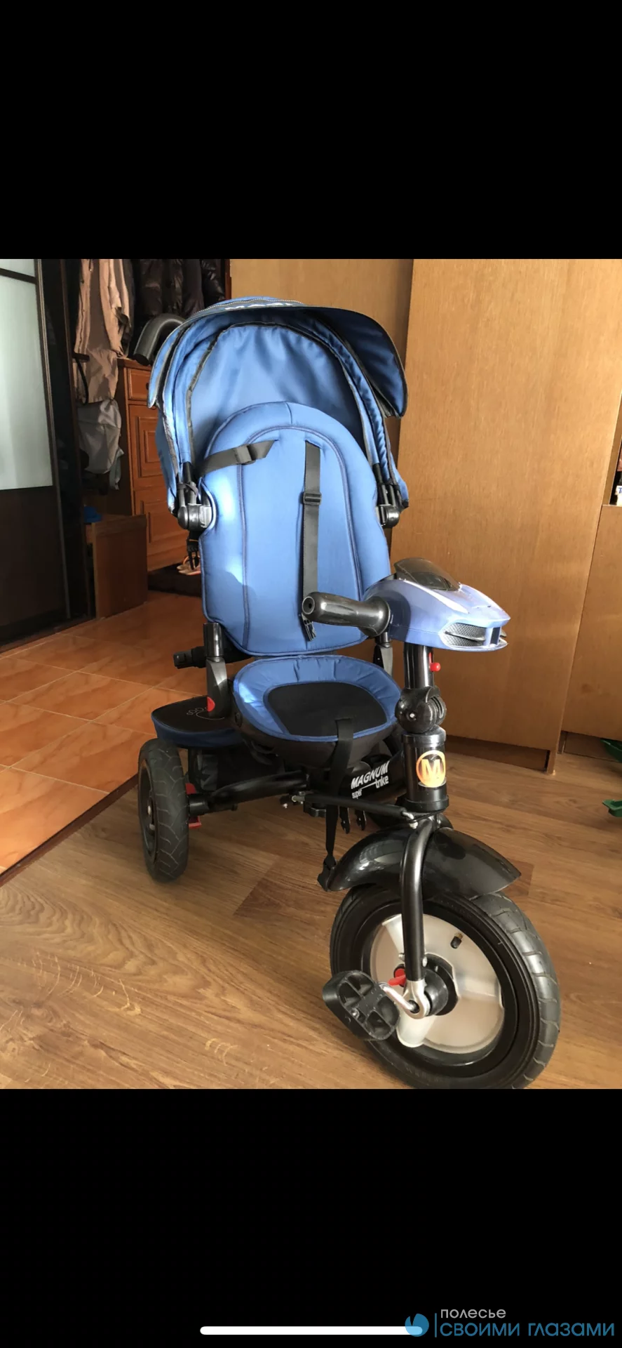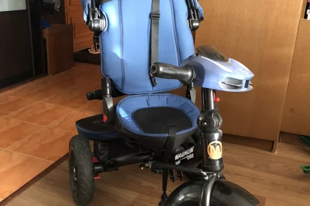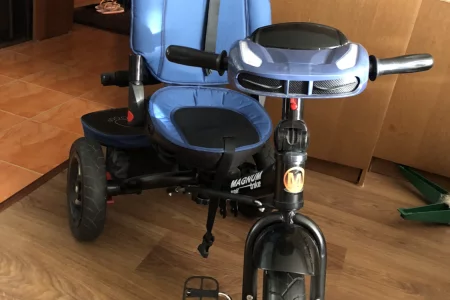 возраст от 1,5 до 5 лет; резиновые шины(мягкий ход); капюшон от солнца/дождя; блокировка педалей; багажник; пульт управления с фарами, моргающими поворотниками, аварийкой и детской песенкой «Еду»; немного б/у в отличном состоянии