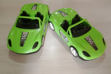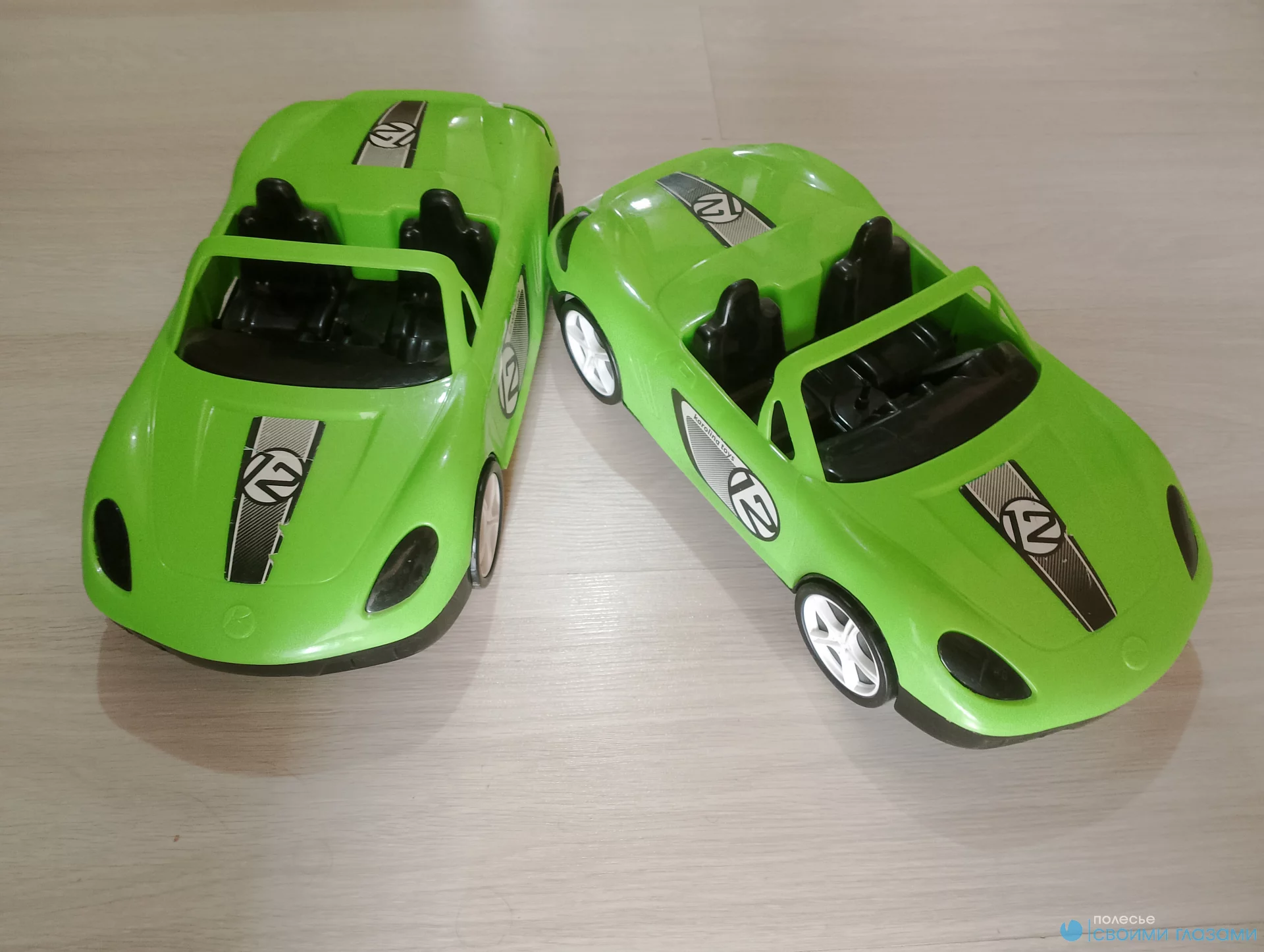 Машина гоночная, 40 см. В хорошем состоянии. Цена за 2 шт. (В подарок машинка белый джип Защитник, Полесье)