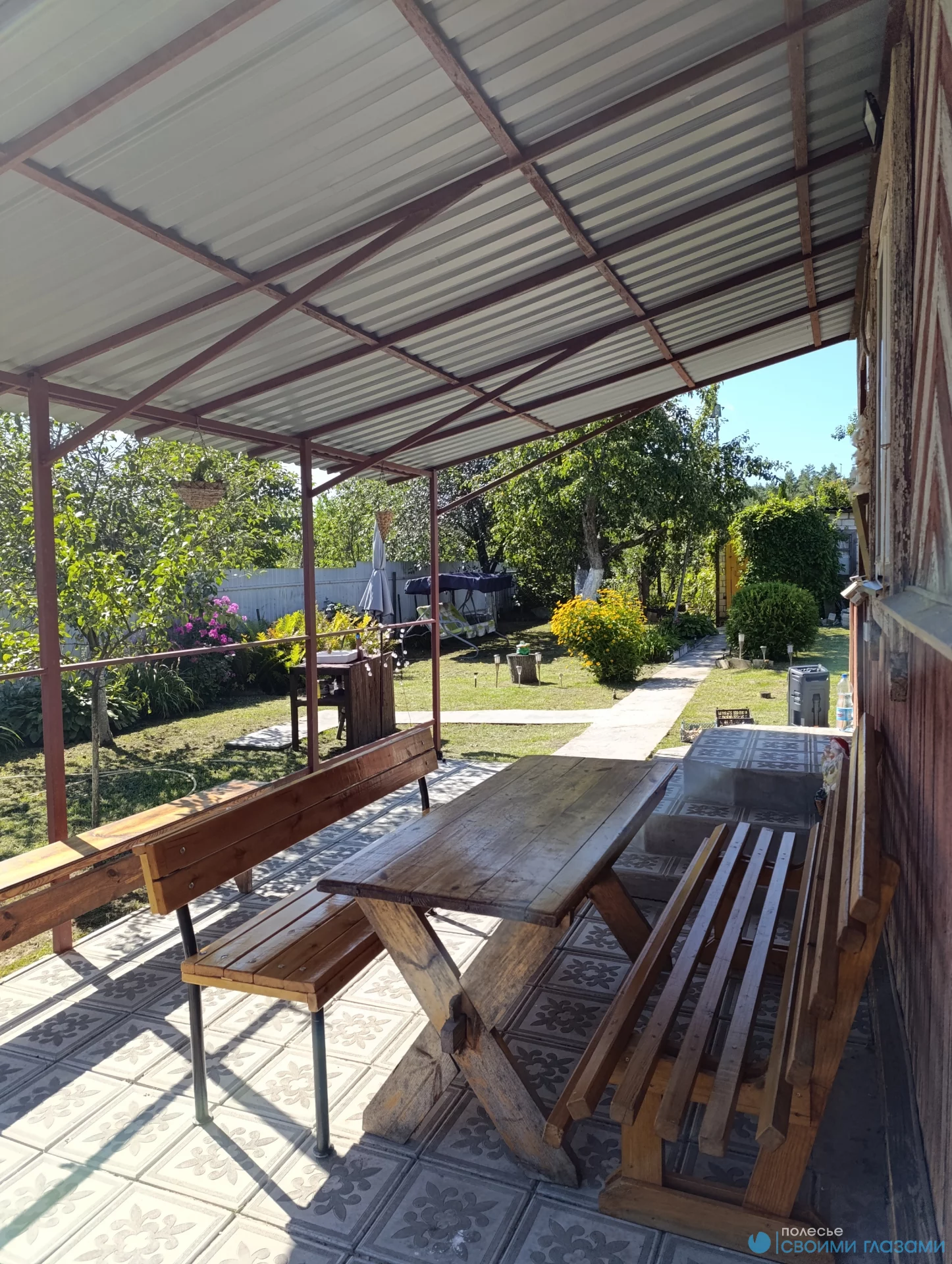 Остаётся садовая группа: стол и скамейки. Все окна заменены на ПВХ. Дом отделан новой опалубкой. По участку залиты дорожки из цемента. Земля обработана!