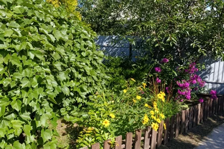 🌳 Имеются плодовые деревья и кустарники. Хозпостройка. Клубника, малина, ежевика. Посажены элитные сорта винограда. Многолетние цветы и различные туи. Участок частично засеян газонной травой. Построена новая большая терасса.