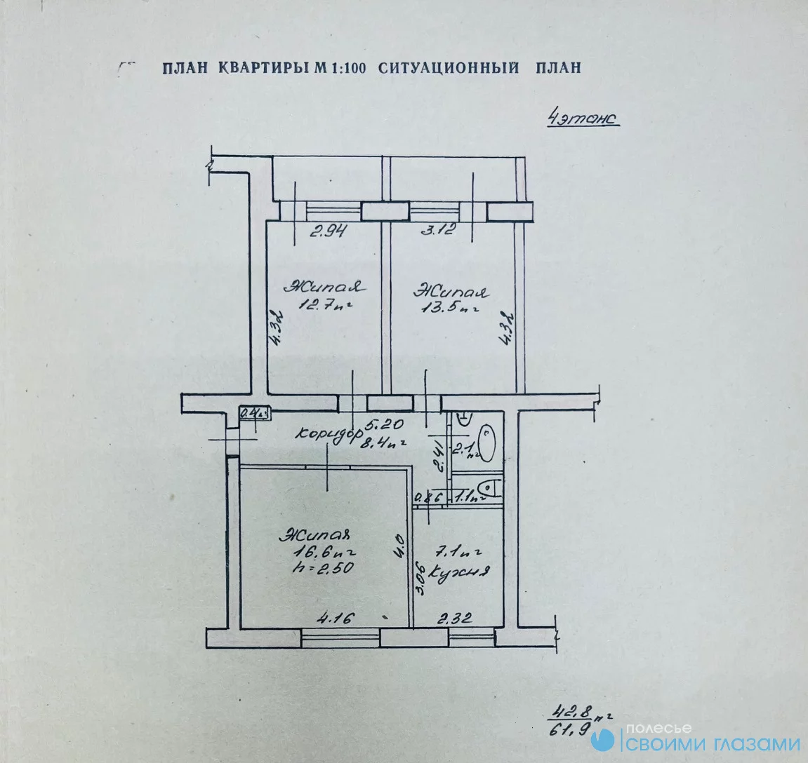 Общей площадью 61,9 кв.м²