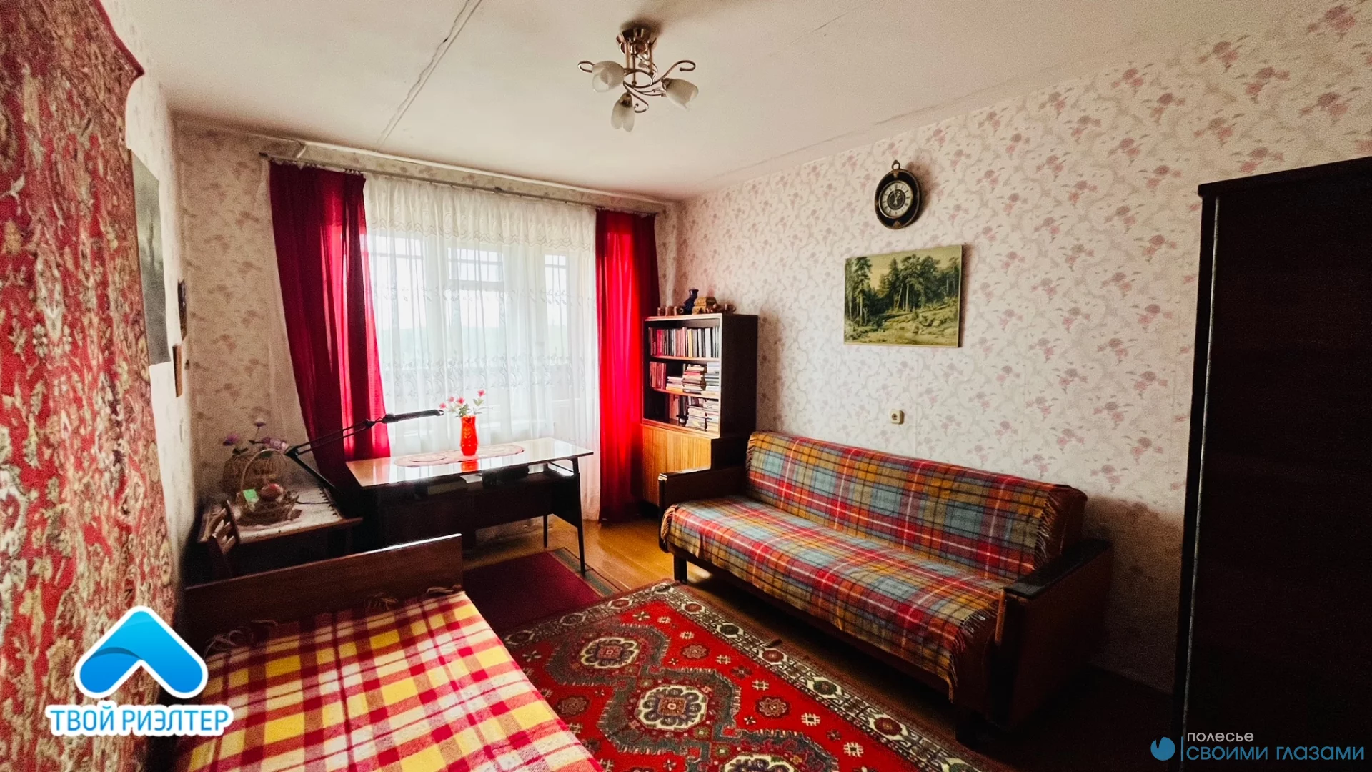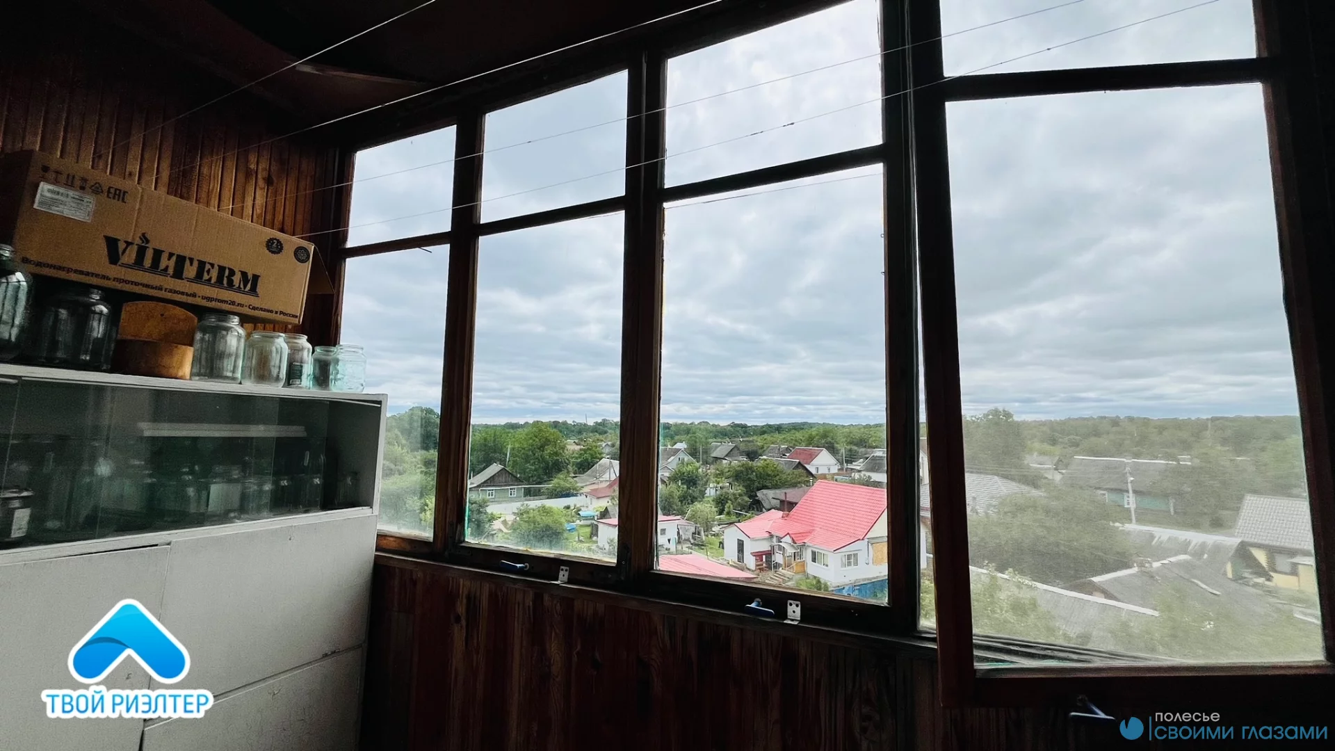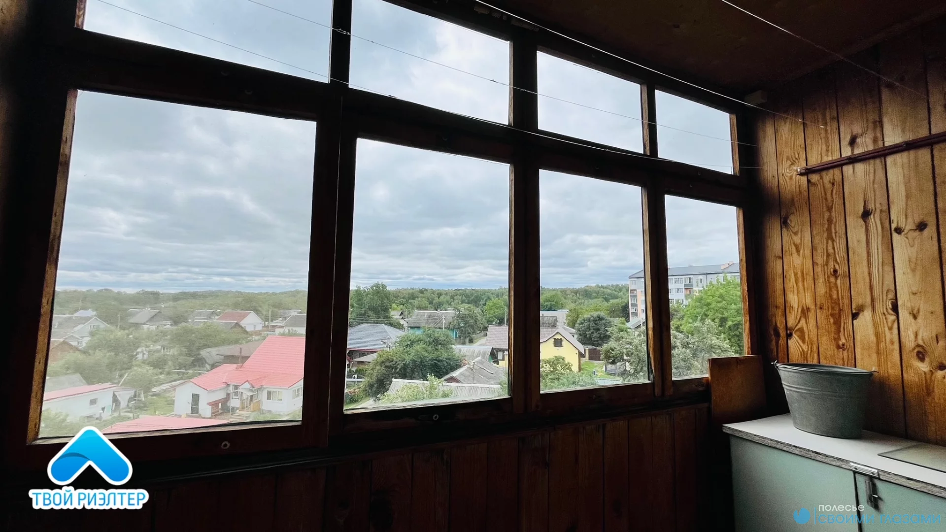Окна ПВХ, деревянные; полы ДСП, большие 2 лоджии - застекленные