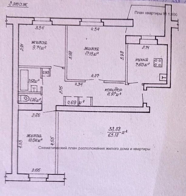 Жилой 38,88 кв.м²