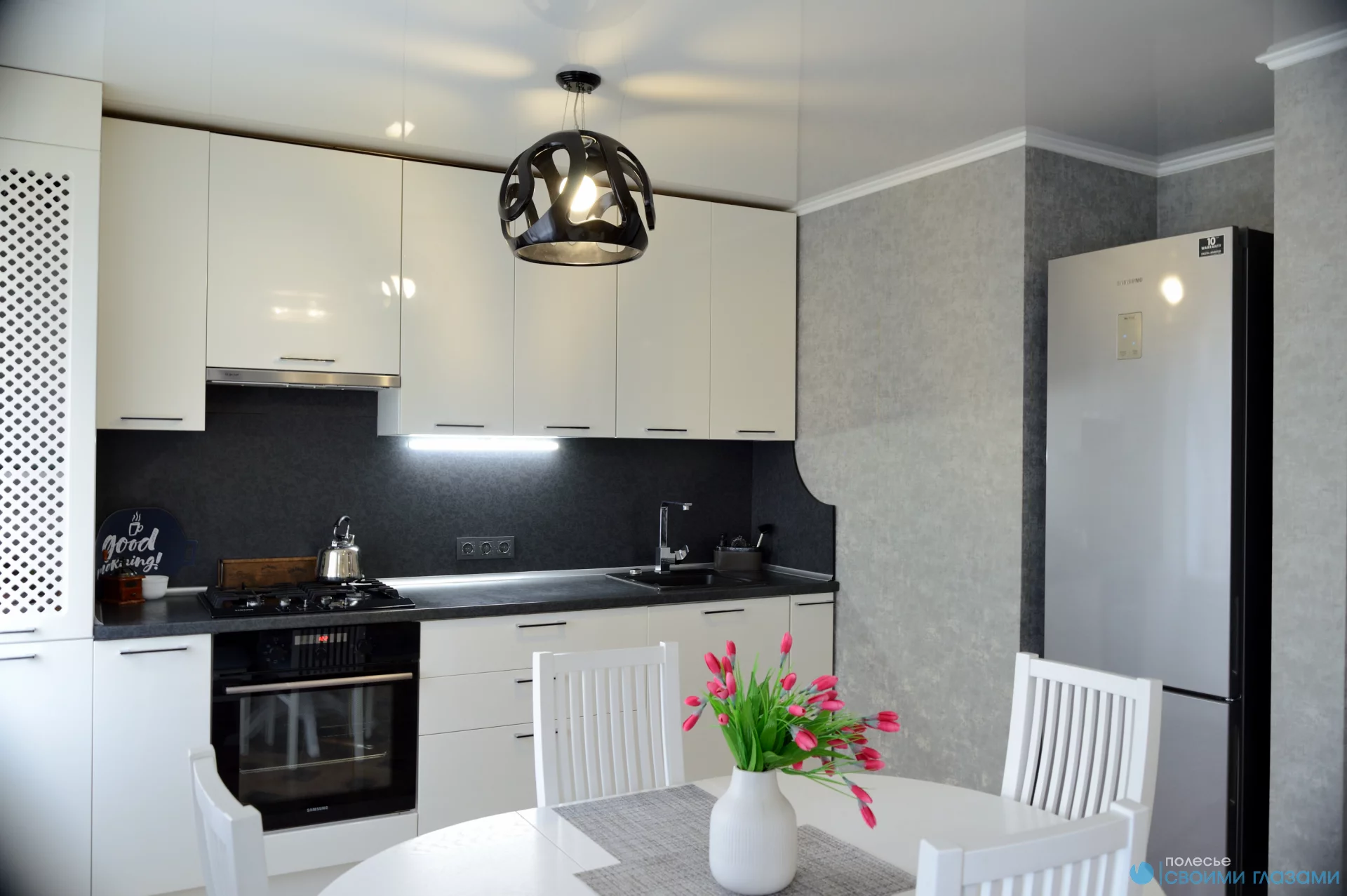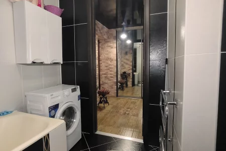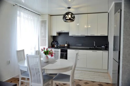Квартира с отличным ремонтом, светлая, уютная. Мебель и техника входят в стоимость: Холодильник Samsung, газовая варочная панель, электрический духовой шкаф, стиральная машина. Использованы современные материалы для отделки: керамогранит, в гостиной пол из немецкого ламинированного паркета. Новые пластиковые окна, натяжные потолки. Межкомнатные двери изготовлены по индивидуальному заказу в размер до потолка. Из спальни вход в гардеробную комнату. В прихожей большой встроенный шкаф-купе.