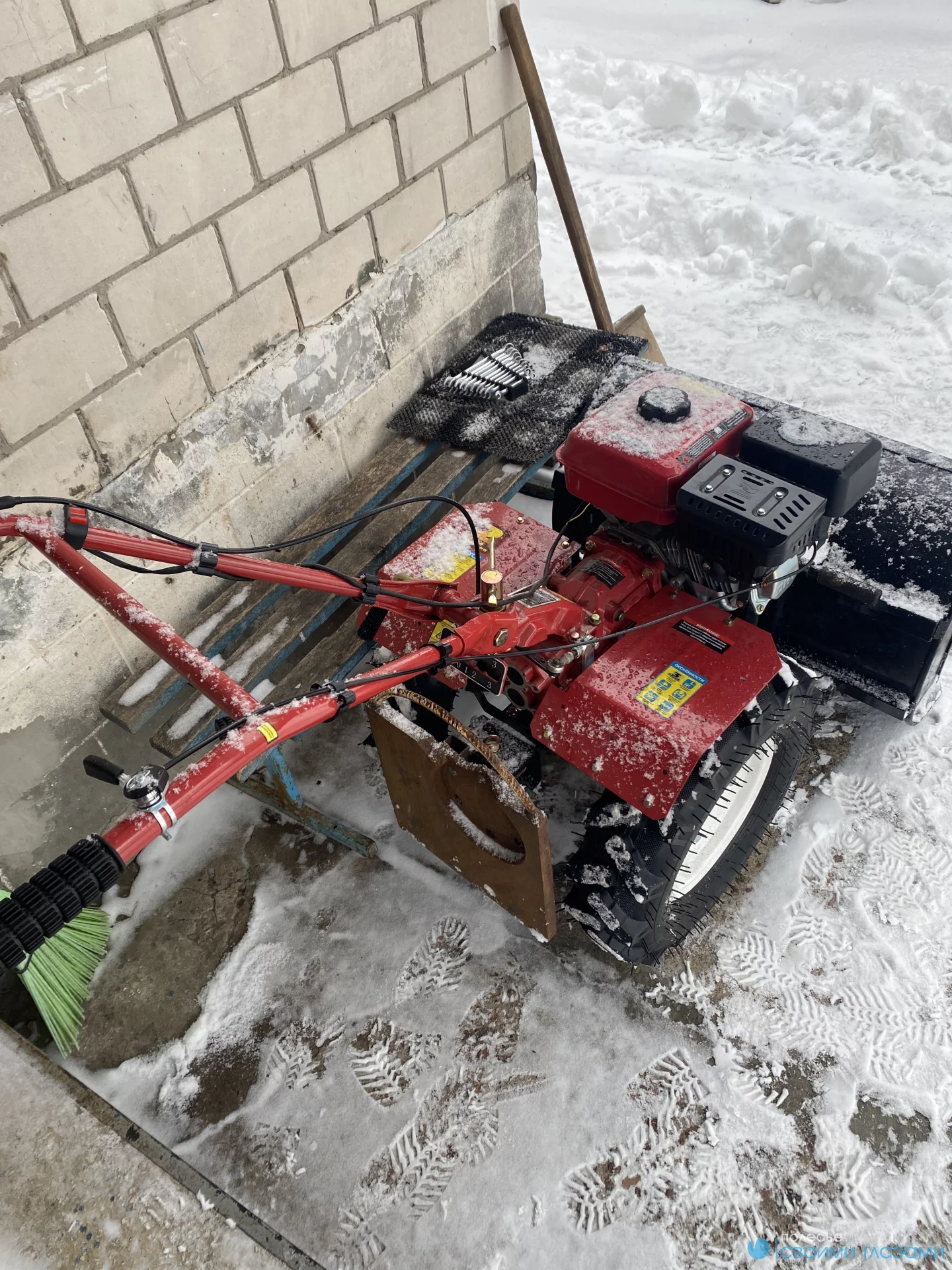 Мотокультиватор, с ковшом для уборки снега. Один год, б/у,