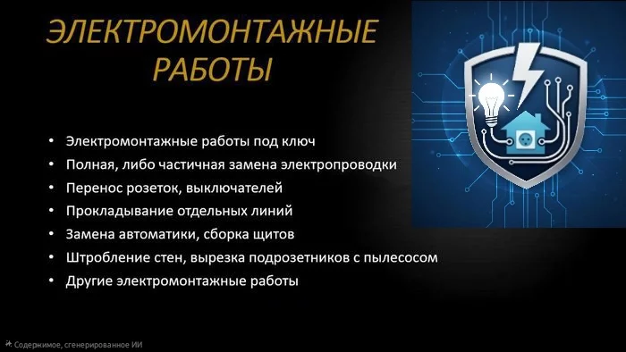 Электромонтажные работы "под ключ".