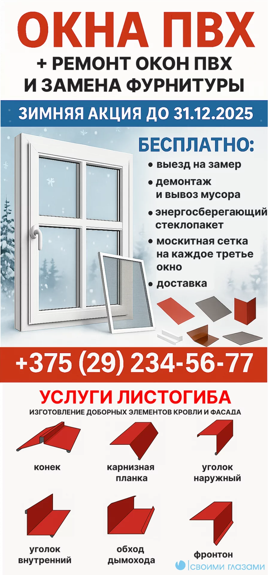 Изготовление окон ПВХ по вашему размеру. Выезд на замер в день обращения. Работаем по г. Мозырь, Калинковичи, Ельск, Наровля, Петриков, Житковичи, Лельчицы, Лоев и др. города и их районы. Бесплатно: - выезд на замер; - демонтаж и вывоз мусора; - энергосберегающий стеклопакет; - москитная сетка на каждое третье окно; - доставка. Узнать стоимость можно отправив размеры окна в личные сообщения.
