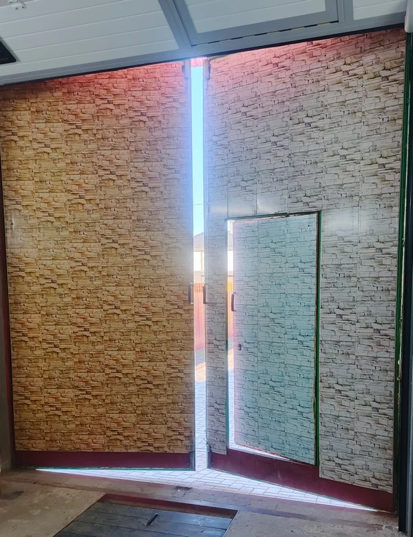 Продам гаражные ворота, без рамки, высота 3,2м, ширина 3,0м, тросовая система запора, утеплены и обшиты