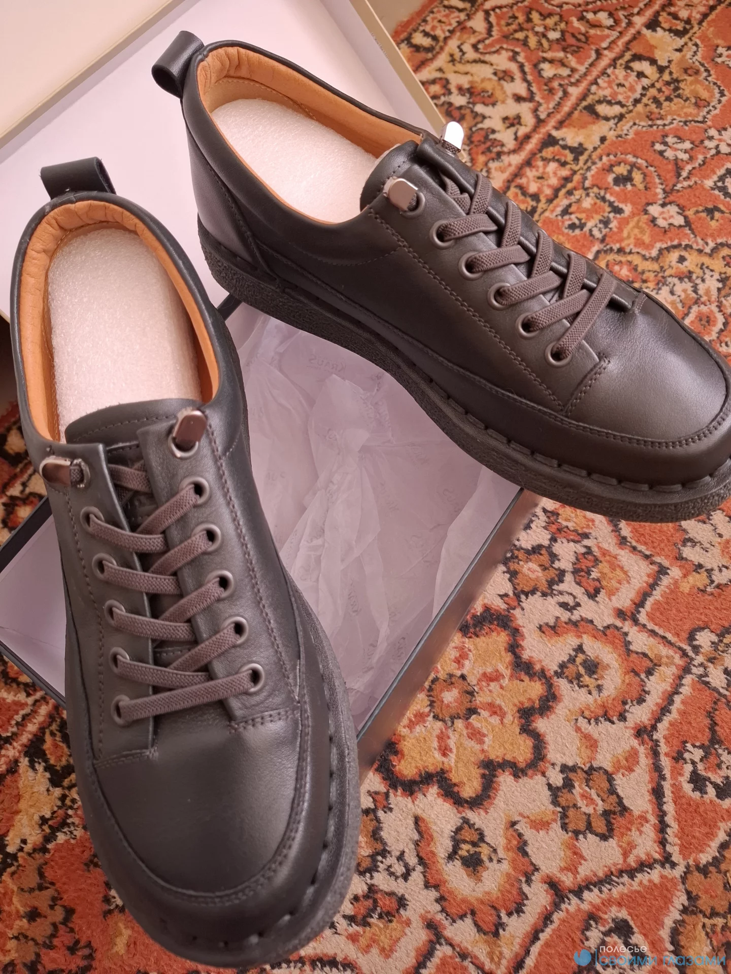 Новые , кожа. Размер 41, но маломерят примерно на один размер, т. е. 40. Мягкие, на каждый день будет очень удобно.