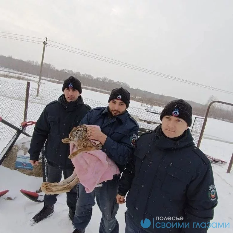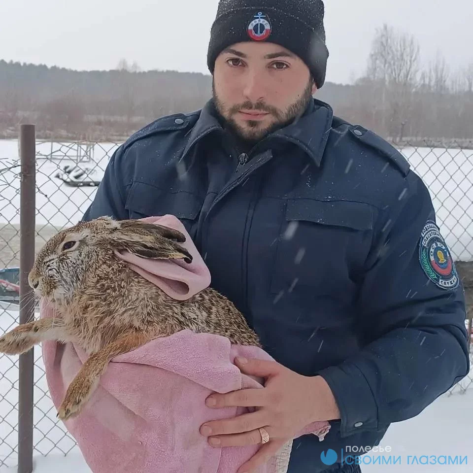 Зайца, который успел сильно замёрзнуть в воде, привезли на станцию, обогрели, а потом отпустили обратно в лес.