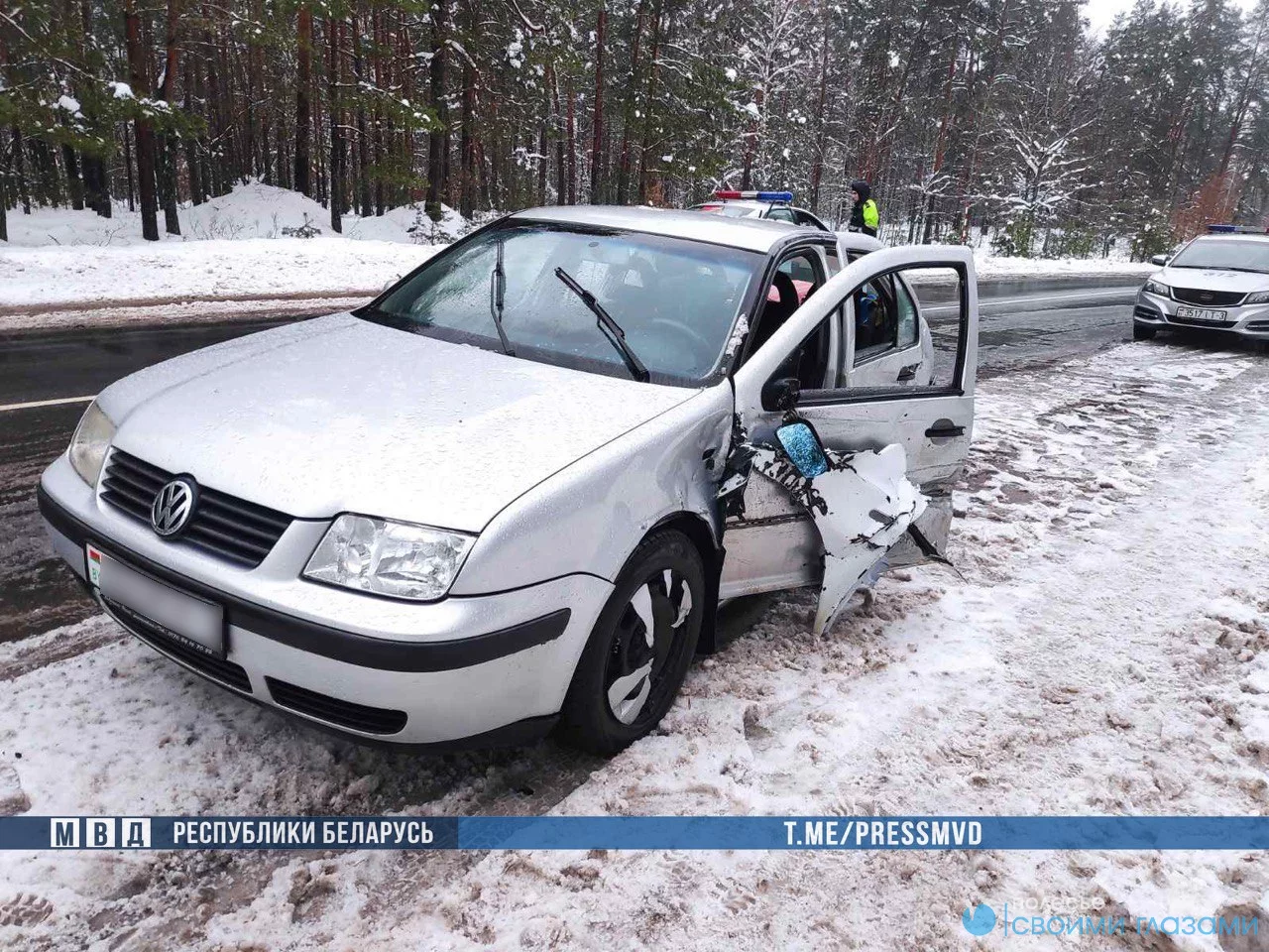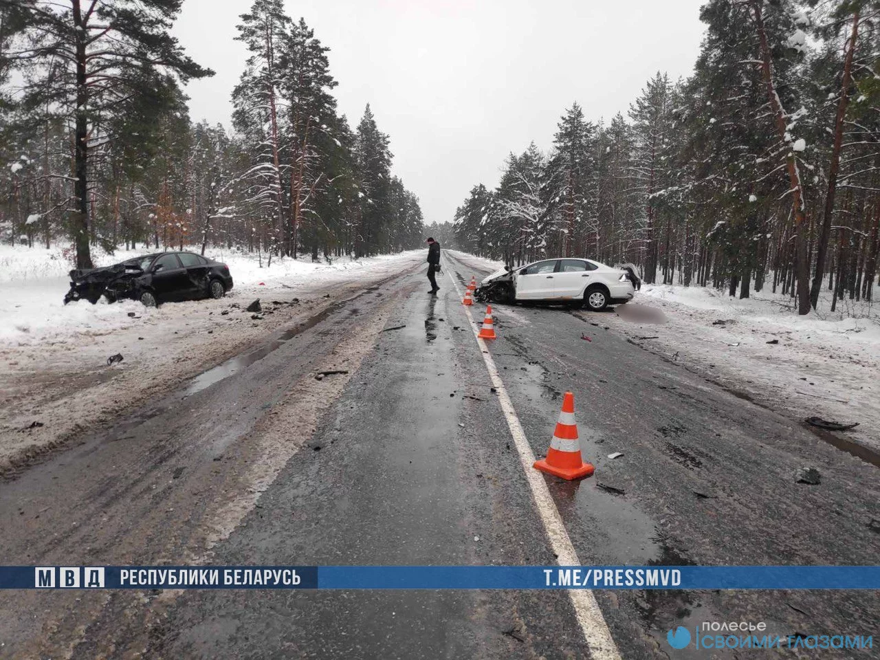 Сегодня около 11.00 на автодороге Р37 Михалки - Наровля - граница Украины (Александровка) 32-летний мозырянин, управляя автомобилем "Фольксваген Поло", не справился с управлением и выехал на полосу встречного движения. Он по касательной столкнулся со встречным "Фольксваген Бора", после чего совершил лобовое столкновение с автомобилем "Фольксваген Джетта".