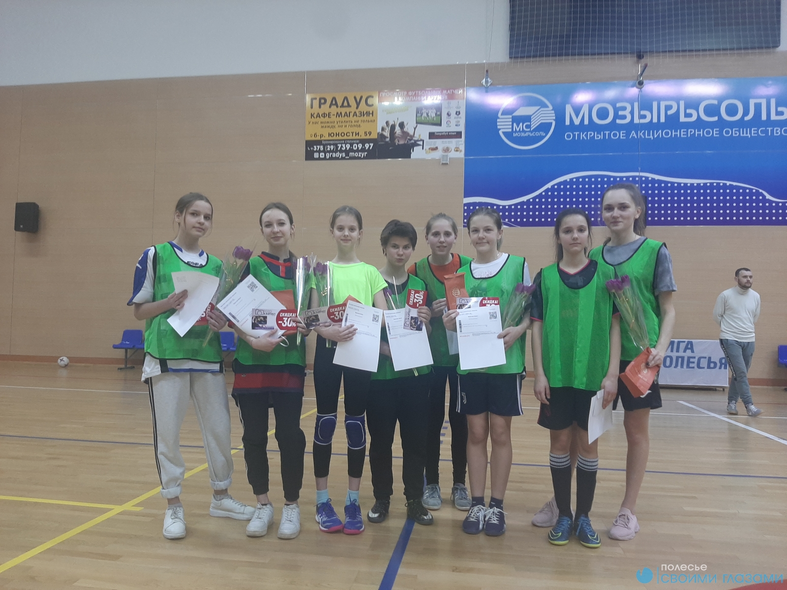 Активисты спортивного любительского сообщества «Лига Полесья» к 8 марта подарили мозырянкам оригинальный подарок: пригласили девочек-подростков и девушек постарше принять участие в праздничном мини-футбольном матче.