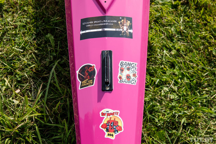 Собственные и мировые рекорды каноистка ставит на лодке, которую сравнивают с Maserati в автомире. Она обклеена множеством наклеек с изображением Дэдпула и белорусского орнамента.