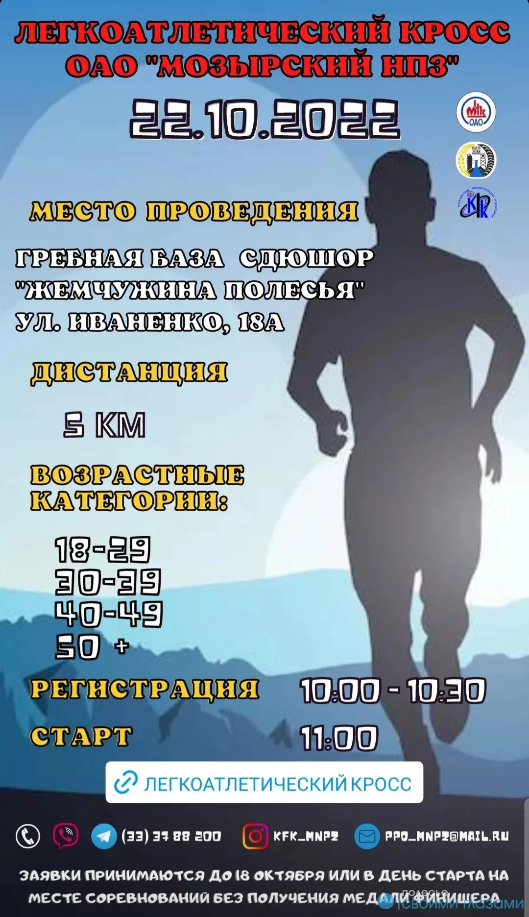 Легкоатлетичесский кросс запланирован на 22 октября. Организаторы - спортивное сообщество ОАО "Мозырский НПЗ" совместно с профсоюзной организацией.