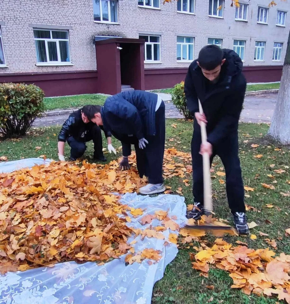 Студенты мозырского вуза привели в порядок территории возле главного корпуса университета. Сгребали опавшую листву, убирали старые ветки деревьев и учащиеся Мозырского политехнического колледжа.